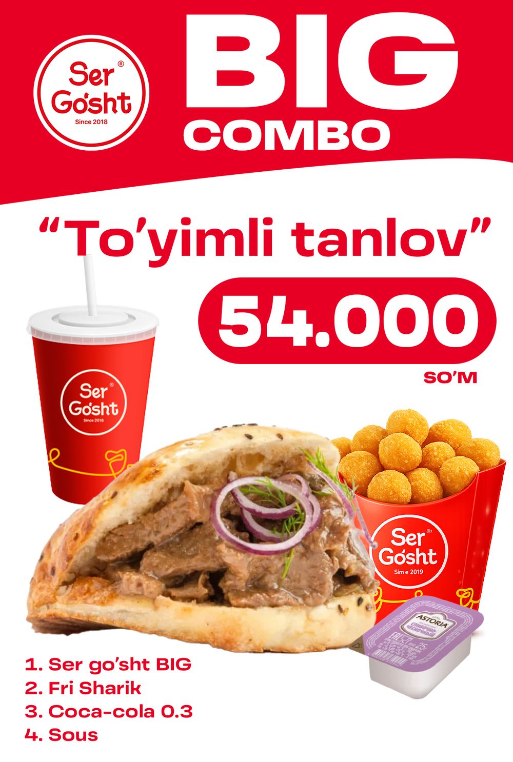 Sergo`sht big + fri sharik 75 gr + sous va razliv cola 0.3L