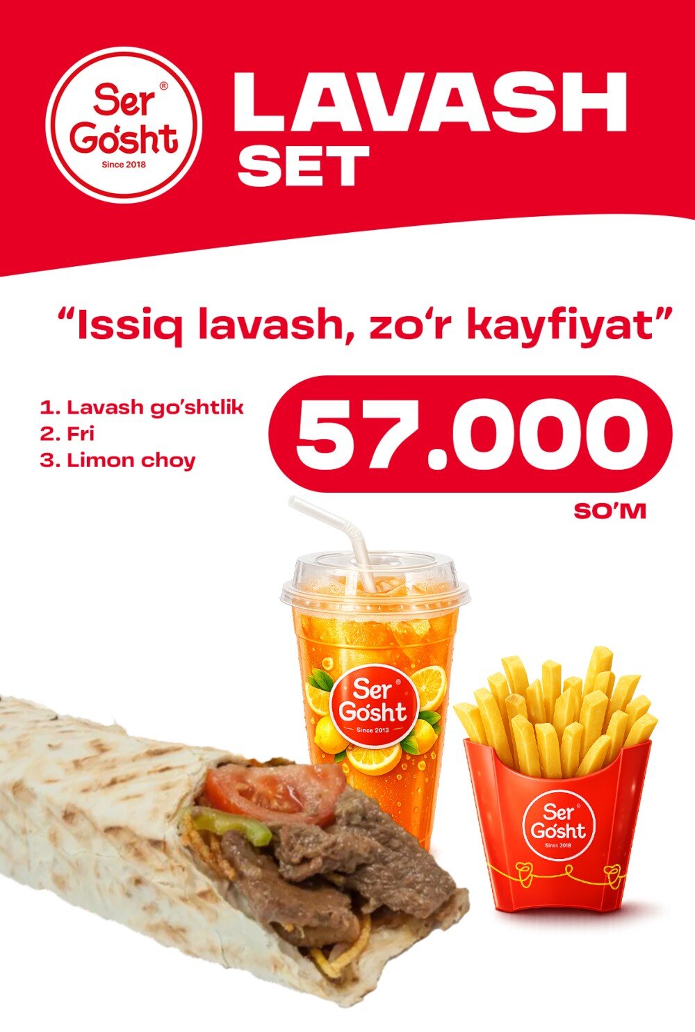 Lavash go'sht + kartoshka fri 100 gr. + limonchoy 0,5 l